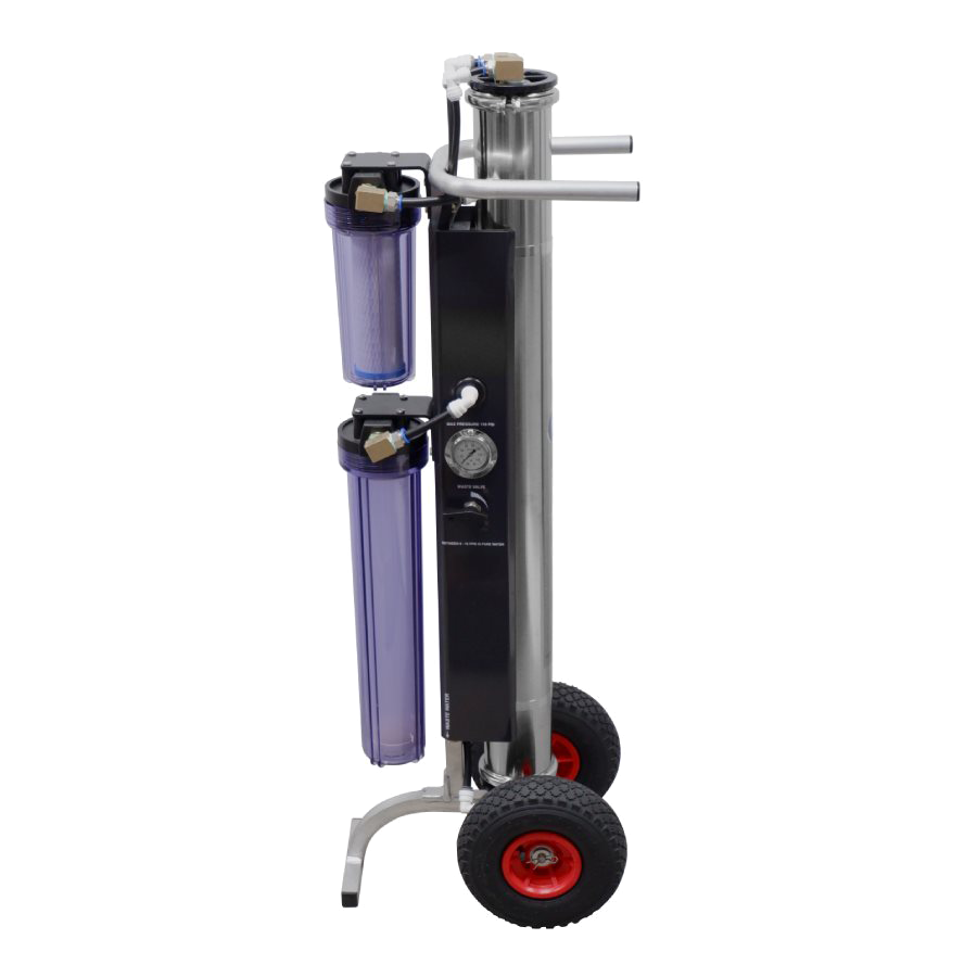 Nouvellement sur le marché en 2024, le système à eau pure Little Giant™, équipé de la technologie d’osmose inverse V8, délivre un débit supérieur aux systèmes trois (3) étapes traditionnels. Ultracompact et pensé pour économiser l’espace, il se loge facilement dans un véhicule tout en laissant place aux dévidoirs et accessoires. Portable et polyvalent, il se déplace aisément sur un chariot plat pour s’adapter à vos opérations sur le terrain.